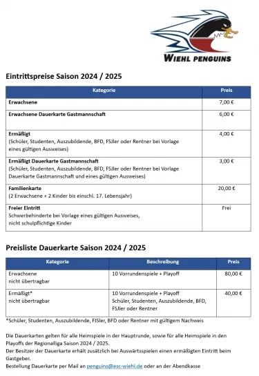 Eintrittspreise Wiehl Penguins